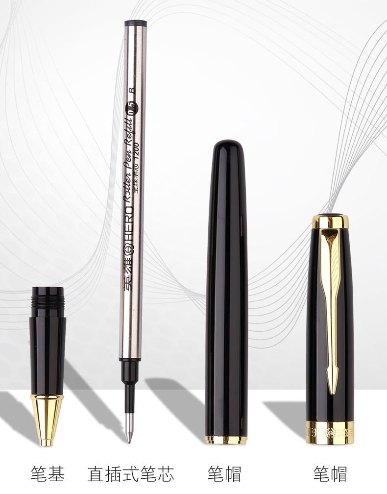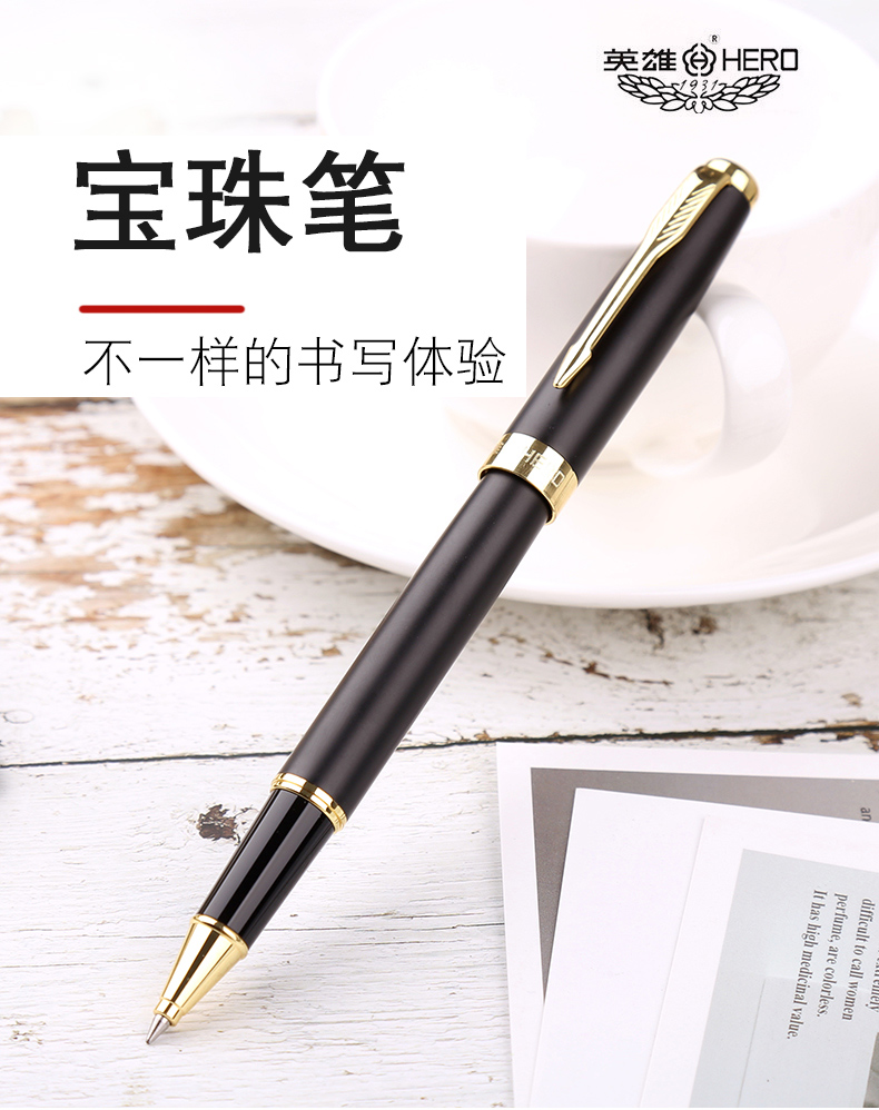 > 英雄签字笔金属宝珠笔黑色水笔商务高档办公笔签名官方正品学生中性笔男士女送纪念礼品免费刻字定做定制logo